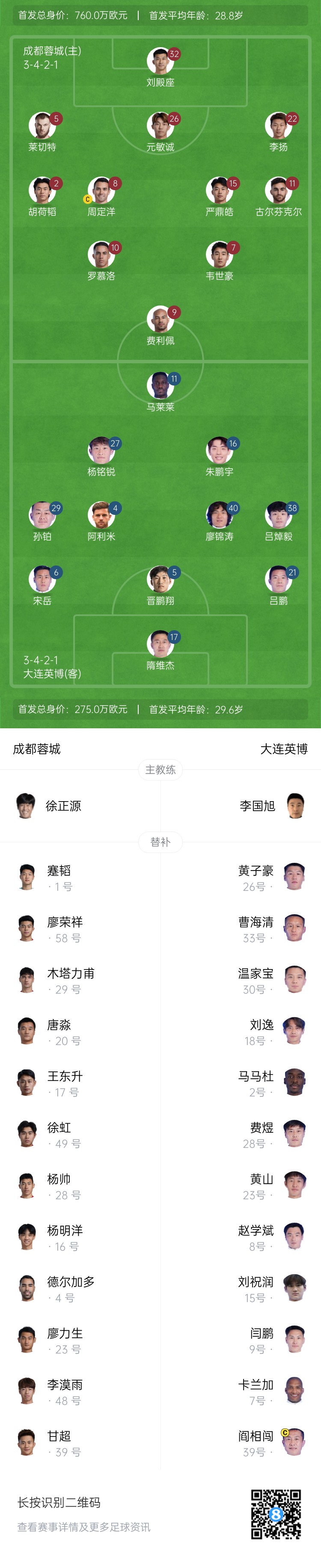 蓉城vs英博首发:4外援PK2外援!19岁朱鹏宇18岁杨铭锐韦世豪先发